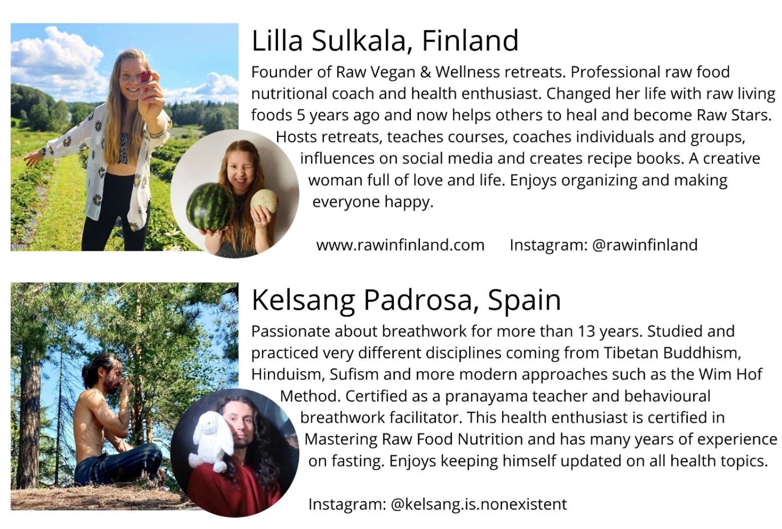 Raw food nutritional coach Lilla Sulkala, Breathwork teacher Kelsang Padrosa